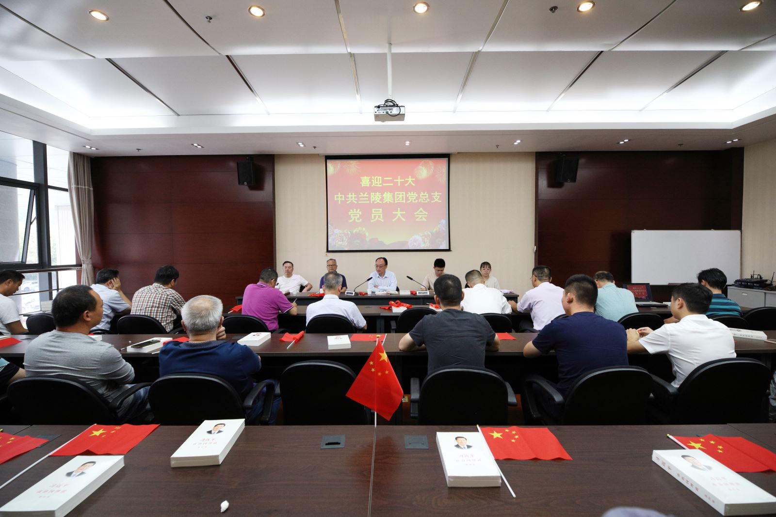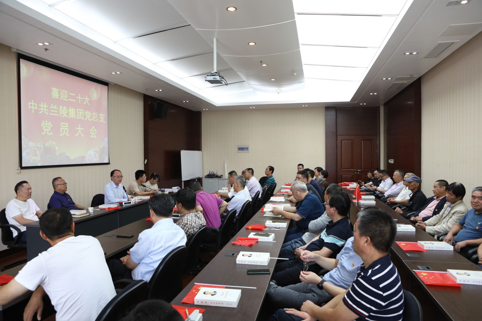 金秋十月,丹桂飄香。為慶祝新中國成立73周年,喜迎黨的二十大勝利召開,凝聚集團(tuán)公司高質(zhì)量發(fā)展磅礴力量,9月30日上午中共江蘇蘭陵集團(tuán)總支部召開了“喜迎二十大,奮進(jìn)新征程”的主題黨會。集團(tuán)公司黨總支各支部黨員、預(yù)備黨員、入黨積極分子共計(jì)50人參加會議。會前,全體黨員揮舞國旗,共祝祖國母親生日快樂。